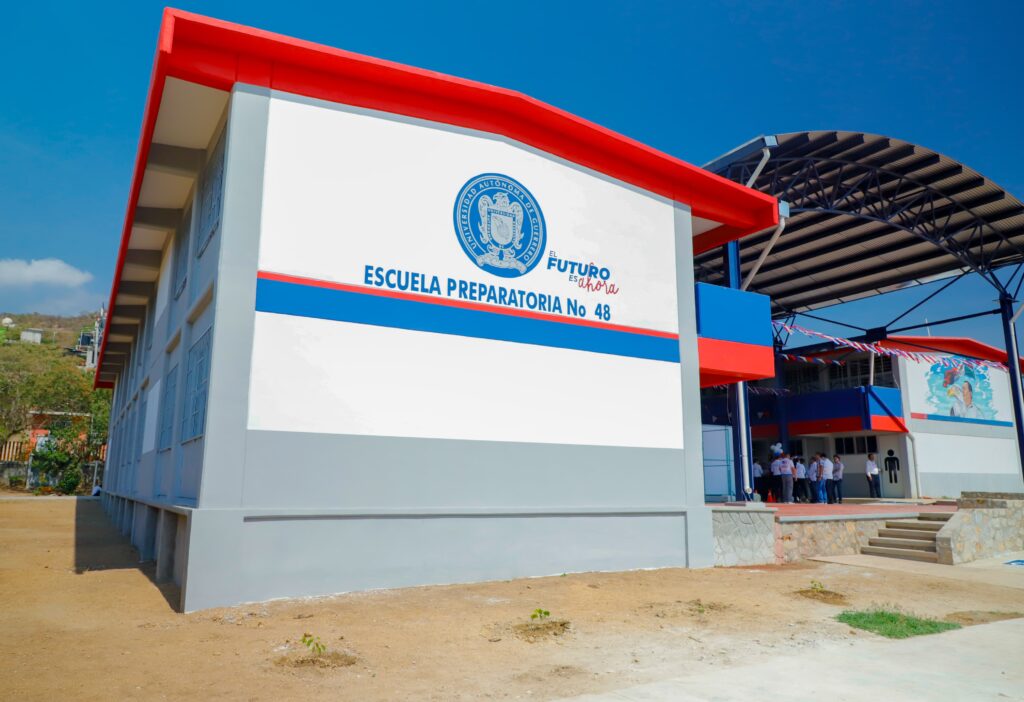 Acapulco, Gro., 7 de mayo de 2025.- El rector de la Universidad Autónoma de Guerrero, Javier Saldaña Almazán inauguró un nuevo edificio de dos niveles en la Escuela Preparatoria No. 48 de La Venta en el municipio de Acapulco, así como un techumbre en la explanada central para que los estudiantes tengan las mejores condiciones de estudio en espacios dignos, continúen con su preparación y evitar la deserción escolar.