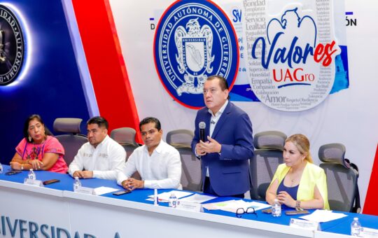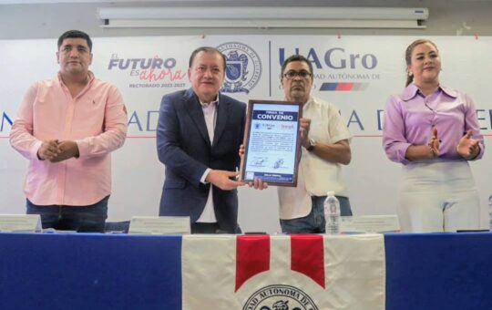 Acapulco, Gro., 8 de mayo de 2025.- El rector de la Universidad Autónoma de Guerrero, Javier Saldaña Almazán, firmó un...